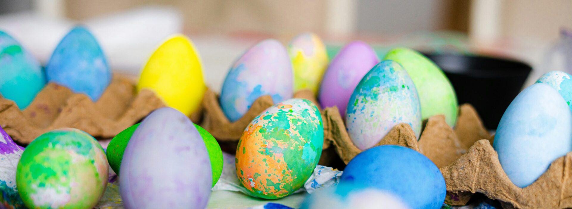 Kinder können an dem Tag von 12 bis 15 Uhr ihre eigenen kunterbunten Ostereier kreieren. Alle Malsachen und die Eier werden von uns zur Verfügung gestellt.