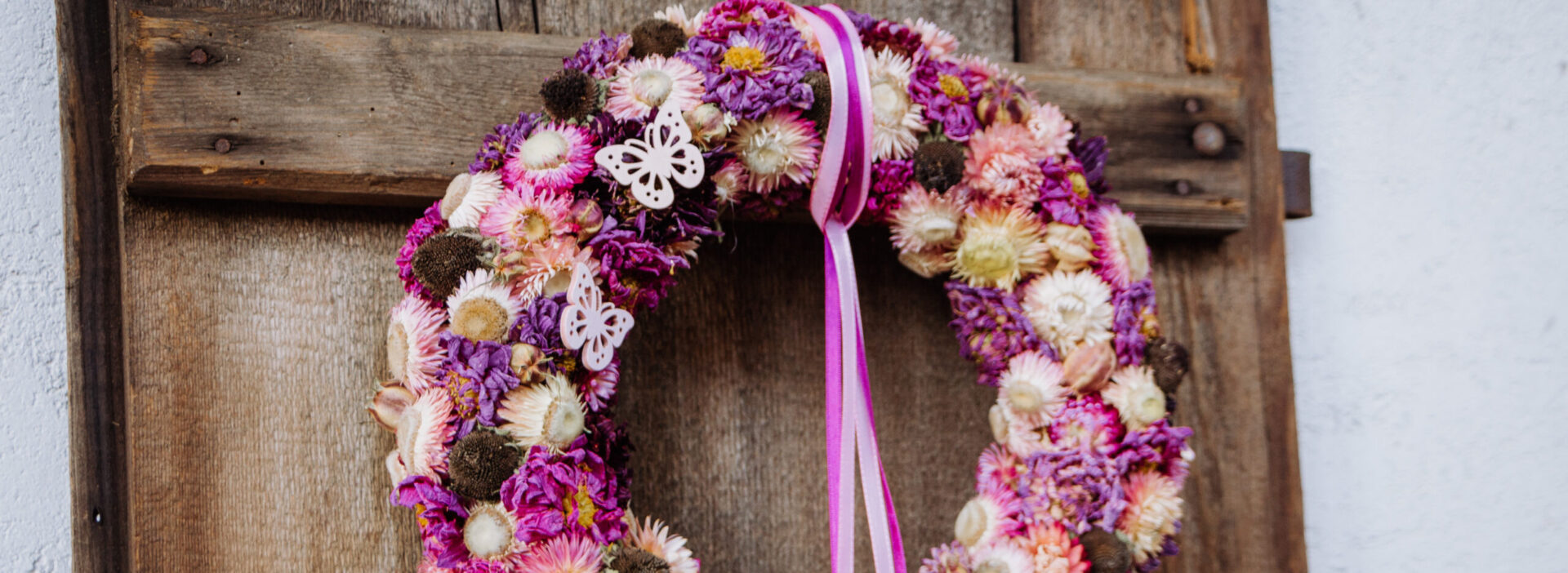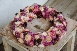 Hast du Lust deine Kreativität auszuleben und dir einen eigenen Kranz aus unseren hofeigenen Trockenblumen zu gestalten?
