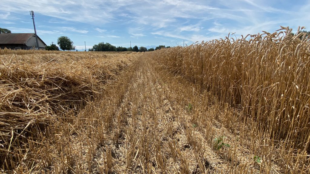 Auf unseren Feldern bauen wir unter anderem Weizen und Hafer an. Jeweils im Herbst wird ausgesät. Kurz vor der Aussaat wird der Boden nochmal umgepflügt und gelockert. Der offene Boden ist anfälliger für Verschlammung und Erosion. Von Ende Juni bis Anfang August ist das «Wintergetreide» erntebereit. Der Zeitpunkt der Ernte ist kritisch. Denn der Weizen muss genügend reif sein. Auch muss es mindestens 2-3 Tage trocken sein, bevor geerntet werden kann.