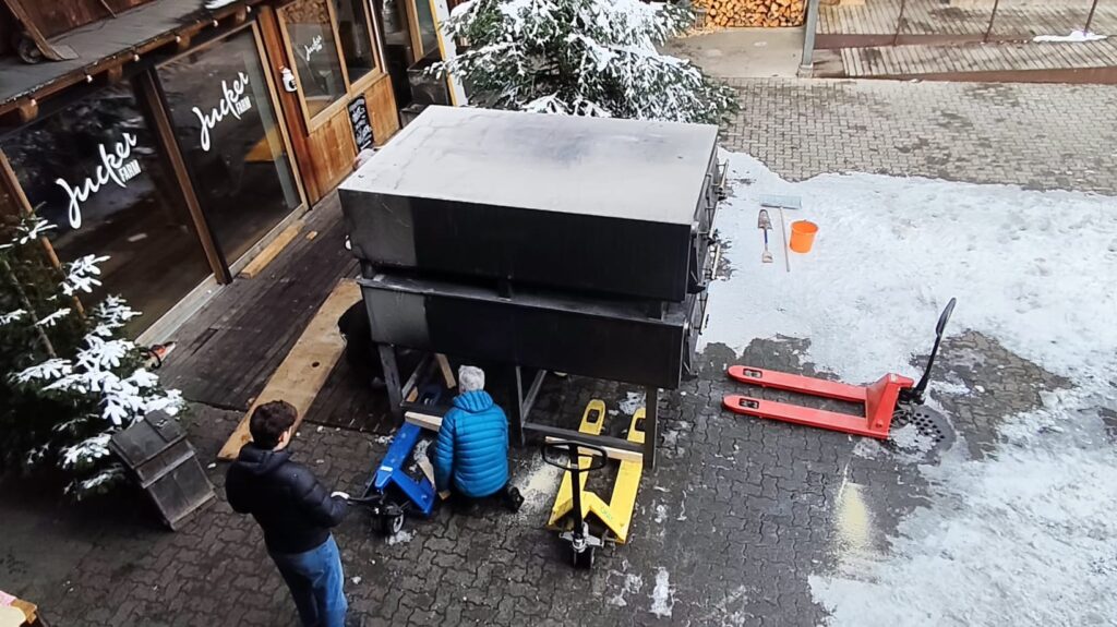 Seit der Geburtsstunde unserer HofBäckerei im Jahr 2015 war er bei uns: der fast 4 Tonnen schwere Holzofen. Doch nach gut 10 Jahren Dienst ist es Zeit für ihn, den Juckerhof in Seegräben zu verlassen. An seine Stelle tritt ein hochmoderner vollelektrischer Etagenofen.