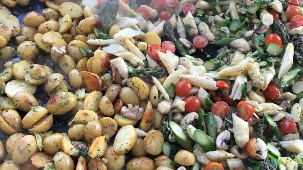 Zuerst die Arbeit, dann das Vergnügen. Nach der Schulung können wir die frischen Spargeln gleich selbst probieren. Es gibt Kartoffeln sowie weisse und grüne Spargeln an einer Bärlauchsauce mit Bärlauchbratwurst. Dazu ein feines ÖpfelSchorli und eine Spargelcrèmesuppe. En Guete!