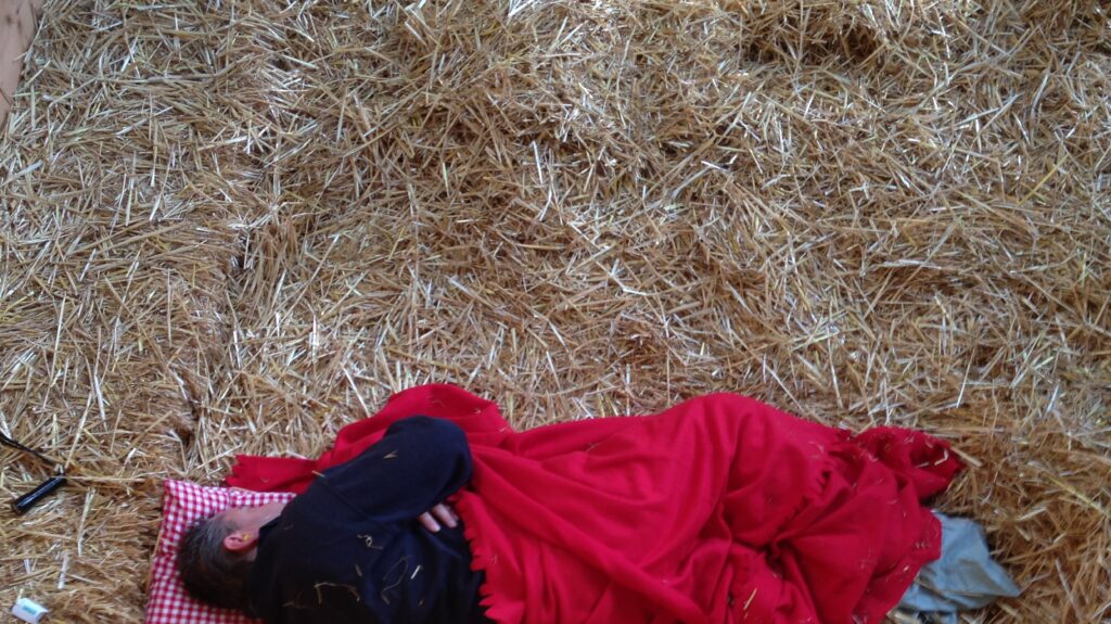 Die Sonne scheint durch die Scheunenfenster. Der Blick auf die Uhr verrät uns, dass es halb acht an diesem Sonntag ist. Die Kühe ziehen mit Vasil vom Stall auf die Weide und strecken muhend ihre Köpfe Richtung Strohlager. Gute Gelegenheit, mit der Sonne wach zu werden und im First-Class-Bad nach der Strohlagernacht frisch zu werden.
