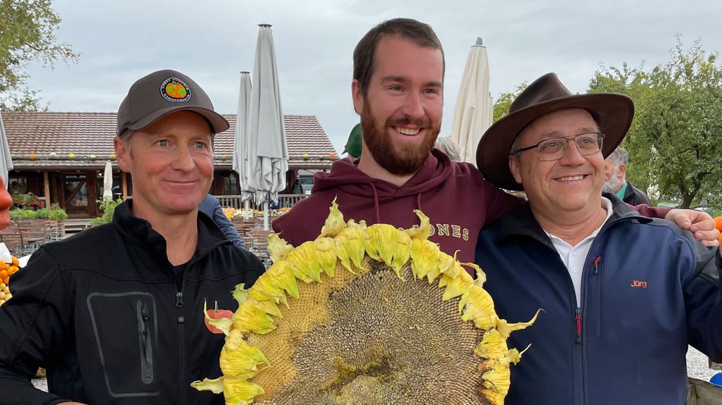 Während es bei den Kürbissen keine Sensationen gab, hagelte es beim Riesengemüse neue Schweizer Rekorde und sogar einen neuen Europarekord. Der grösste Sonnenblumenkopf von Florian Isler aus Esslingen ZH hatte einen Durchmesser von 73.3 cm und übertraf den bisherigen Rekord von Jürg Wiesli aus dem Jahr 2015 mit 66cm. Überhaupt war es Florian Islers Tag, denn er gewann den Wiege-Krimi auch bei den Kürbissen mit rund 40 Kilo Abstand zum Zweitplatzierten.