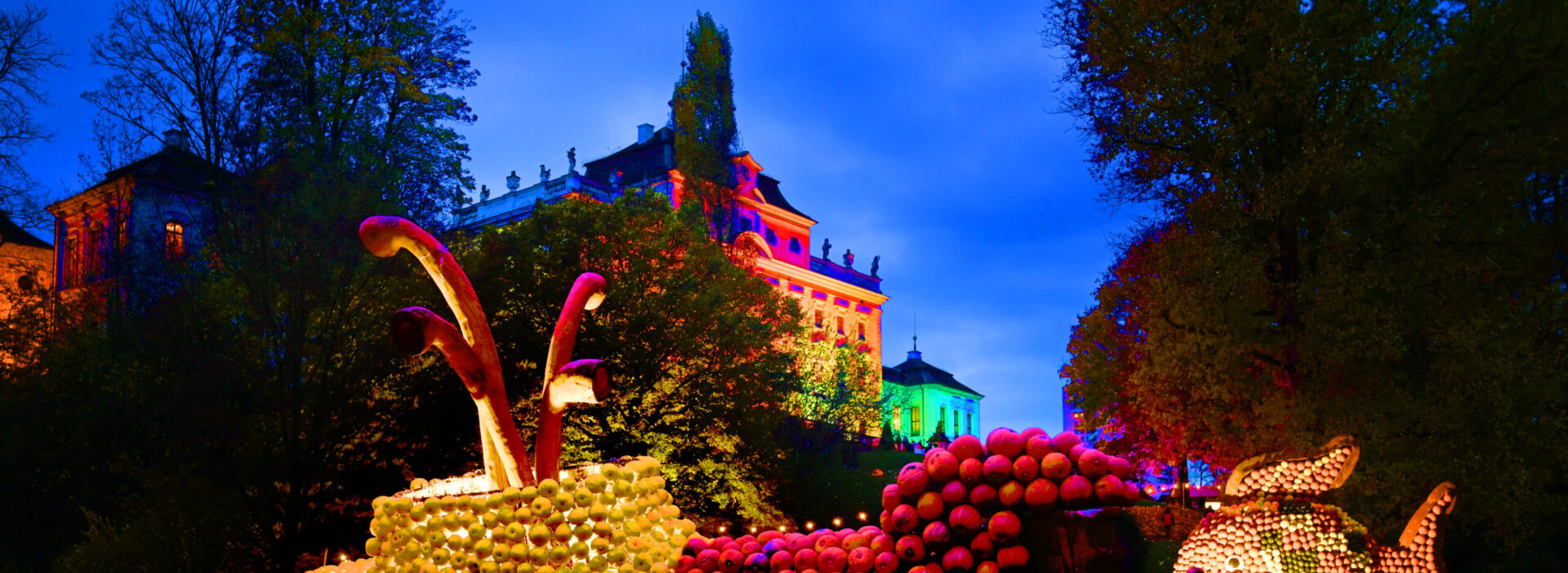 Wie werden der Park und große Teile der Kürbis-Ausstellung illuminiert? Lesen Sie hier die Beschreibung des Blühenden Barock: